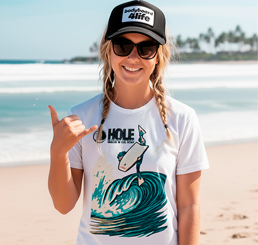 🌊 Pegue a onda perfeita! Design vibrante que captura a adrenalina do bodyboarding, direto para o seu estilo. Vista a paixão pelo mar com a HoleWaves!